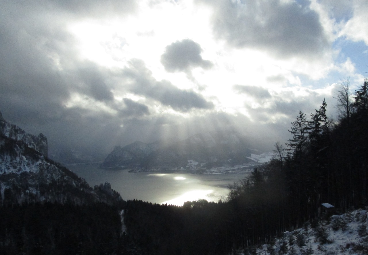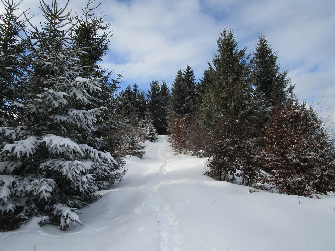Endlich wieder so halbwegs genug Schnee, um auch in der engsten Umgebung eine Schneeschuhwanderung zu unternehmen. Leider halt wieder alleine und bei wechselnden Wetterbedingungen – Schneefall und Sonnenschein wechselten sich ab – ging es vom Mülibankerl zur Grünbergbäurin, weiter am Mitterweg bis kurz vors Radmoos, Abkürzung durch den Wald zum Wanderweg Laudachsee und übers Hochgschirr rauf zur Grünbergalm. Runter ging es dann über die Schipiste, der gestrige Nachmittag wurde super genutzt.