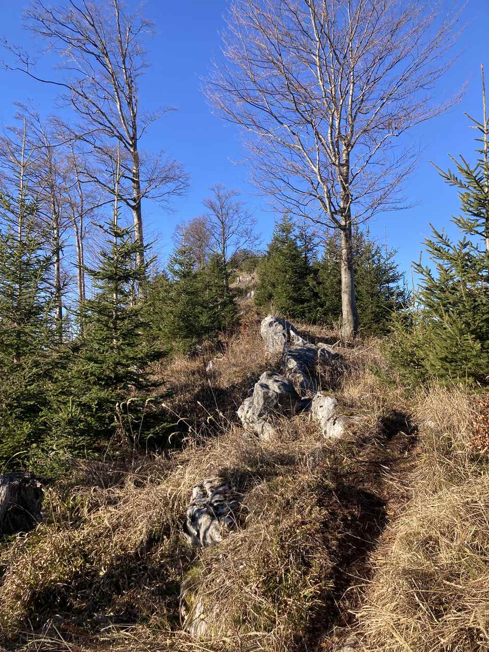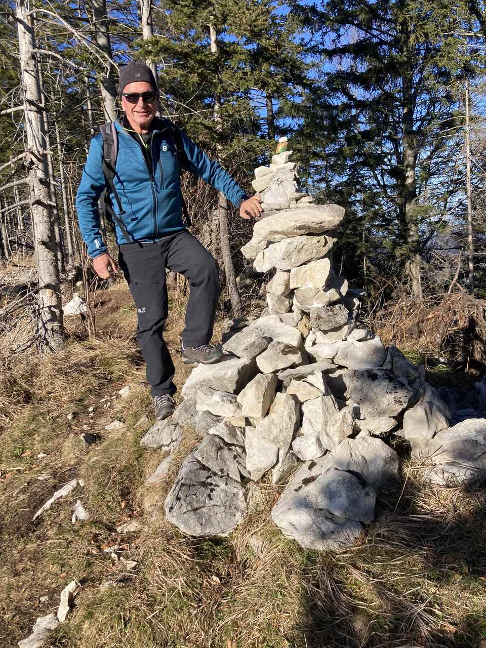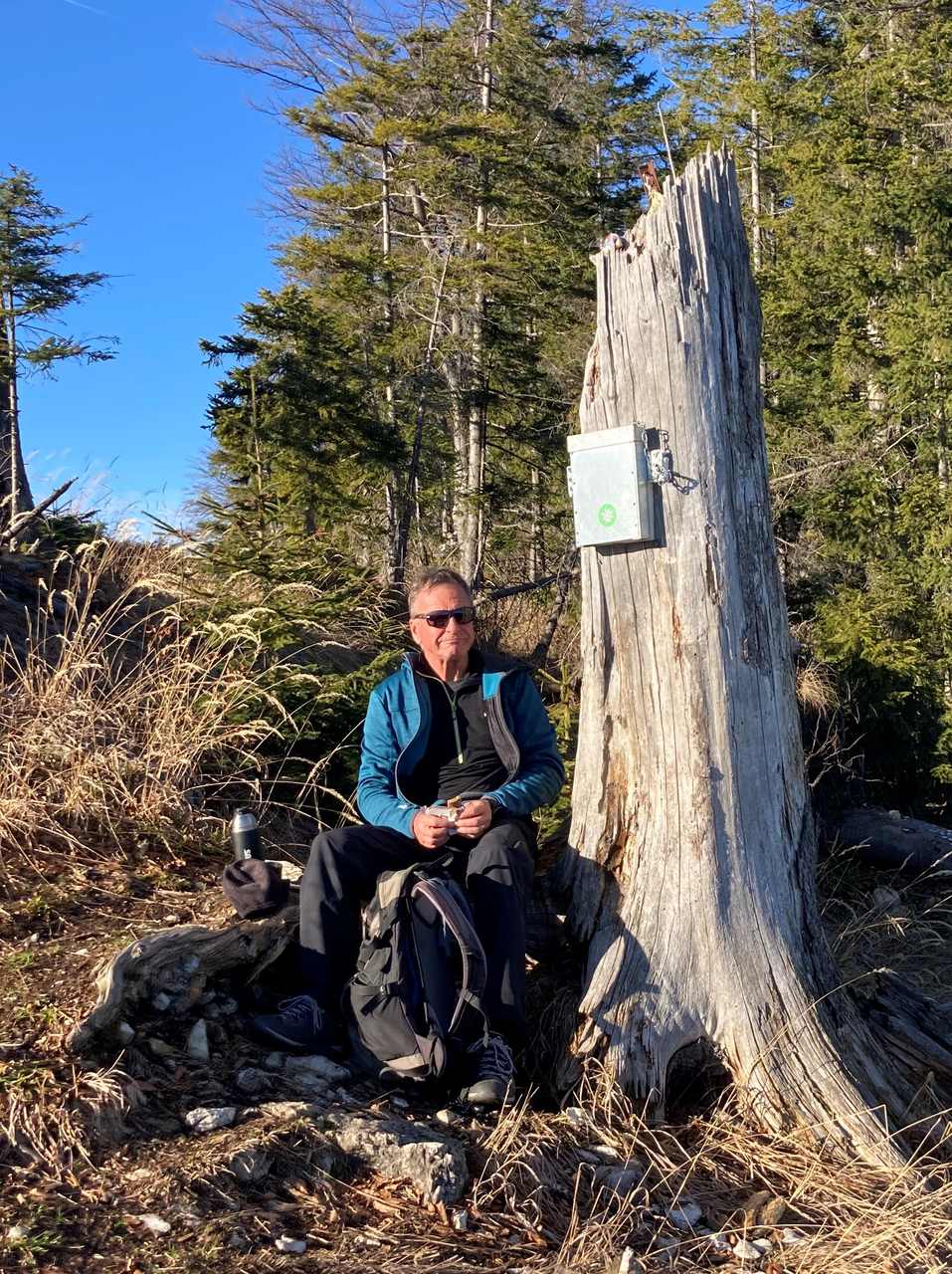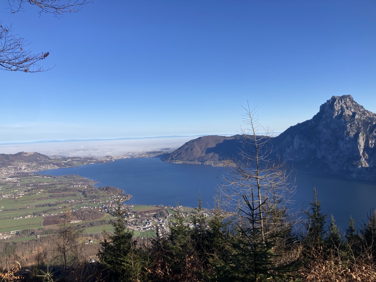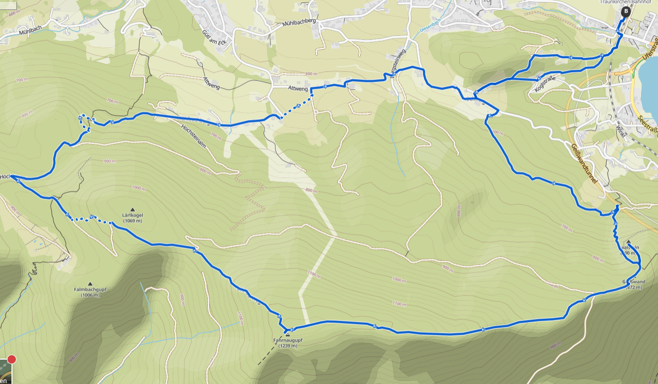 Erst am Freitag war ich mit den Schneeschuhen im Höllengebirge unterwegs und heute war es ein Bergrücken davor (und auch mit 1.239 m etwas niedriger), den ich mit den Wanderschuhes überschritten habe – den Fahrnaugupf. Schön dass mich mein Schulfreund Toni begleiten wollte. Um 8:45 hab ich ihn abgeholt und und um 9:00 sind wir vom Parkplatz beim Bahnhof Traunkirchen gestartet. Erst rüber und rauf zum wunderbaren Aussichtsplatz am Baalstein, nach einer kurzen Rast dann an der Gaiswand vorbei, hoch zur Forststraße und dann immer am Grat rauf, bis der Bergrücken immer sanfter wird. Je höher wir kommen, desto wärmer wird es, wir sehen in der Ferne, dass der Norden von Gmunden noch im Nebel liegt und links und rechts des Pfades beginnen Schneerosen zu blühen. Oben am Rücken dann eine kurze Jause, bevor es dann am mächtigen Gipfelkreuz (ca. 70 cm hoch) vorbei wider runter geht Richtung Lärlkogel/Hochsteinalm. Nachdem die heute Sperrtag hat lohnt sich kein Abstecher dorthin, also gehen wir zügig weiter, über den Sommerweg runter zum Burgstein, vorbei an dem alten Wirtshaus dort und über den Sulzberg zur Elisabethruhe und wieder zum Auto., wo wir kurz nach 13:00 eintreffen. Wir spüren, dass herunten im Tal wieder deutlich kühler ist und freuen uns, dass wir diesen Vormittag so schön erleben durften.