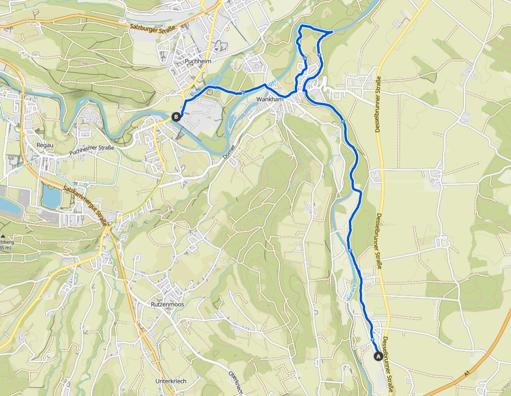 Der Wetterbericht für heute war ja eindeutig auf Regen, trotzdem wollte ich mich etwas draußen bewegen – was Einfaches halt. Und als Öffi-Fan bin ich um 10:21 mit dem 520er zum Bahnhof, mit dem Zug nach Aurachkirchen, und dann auf sehr einsamen Forstwegen und meist der Bahn entlang nach Wankham gewandert und dann der Aurach entlang bis zu jenem Punkt, bis diese in die Ager mündet und so verschwindet. Ziemlich frische Biberspuren ließen mich Ausschau halten, aber außer deren Behausung an der Ager und Rehen im Wald war nichts zu sehen. Von Wankham ging es dann weiter über den Agersteg in das Gebiet der Puchheimer Au, wo in den Teichen unterhalb der Basilika wunderschöne Mandarinenten herumschwammen. Und bei meinem Ziel, dem sehr gemütlichen Gasthaus Weissl gab es noch eine wärmende Suppe, bevor mich der Bus zum Bahnhof Attnang brachte. Zurück nach Hause wieder mit Zug und 520er, so war ich total Öffi in Summe 3 h und 20 Min unterwegs. So einfach kann auch soo schön sein.
