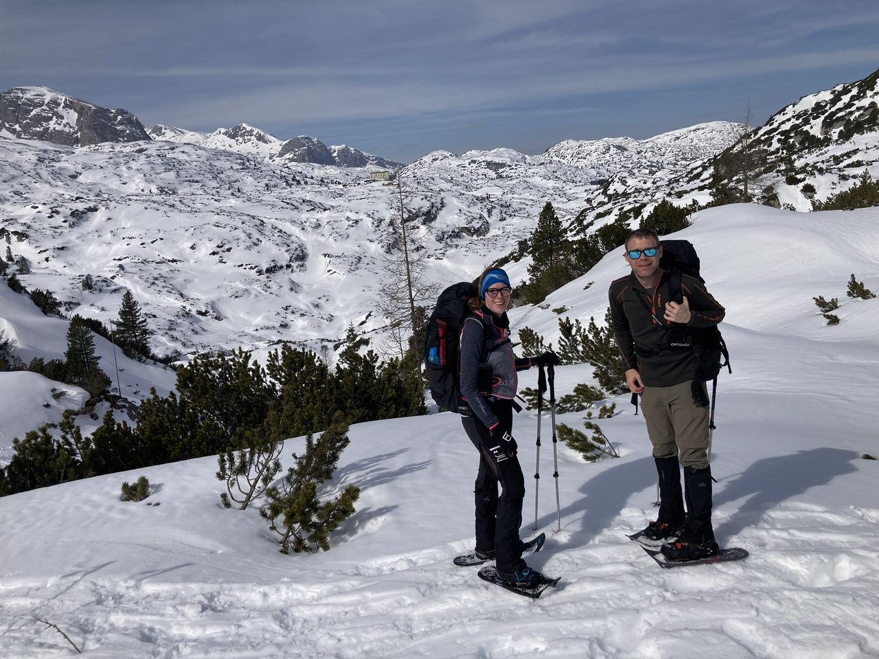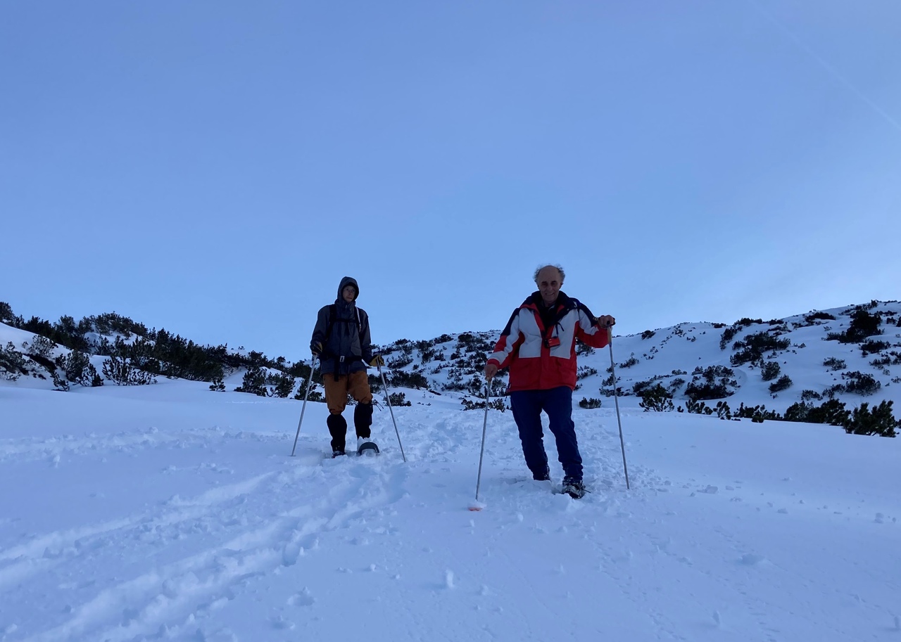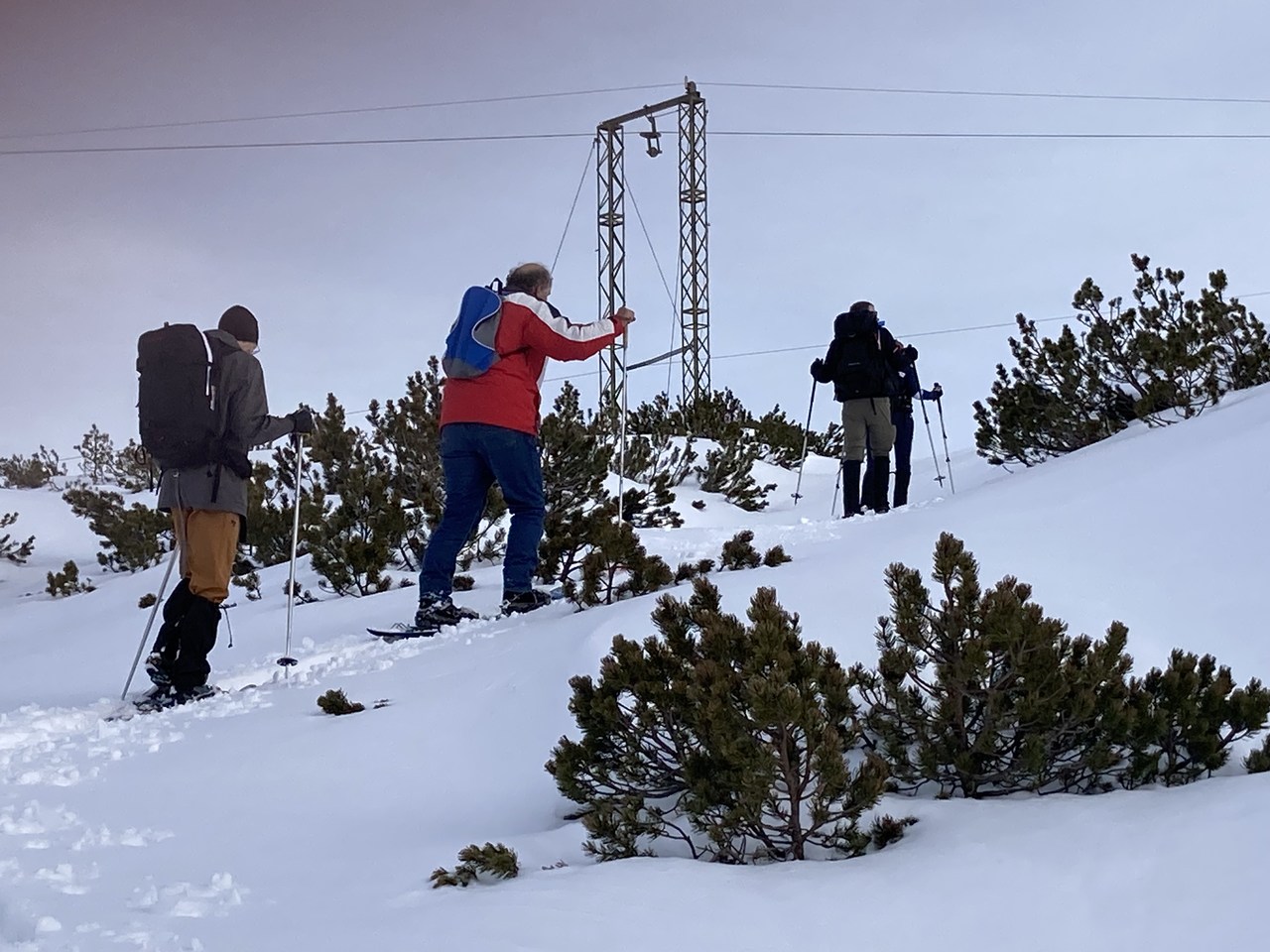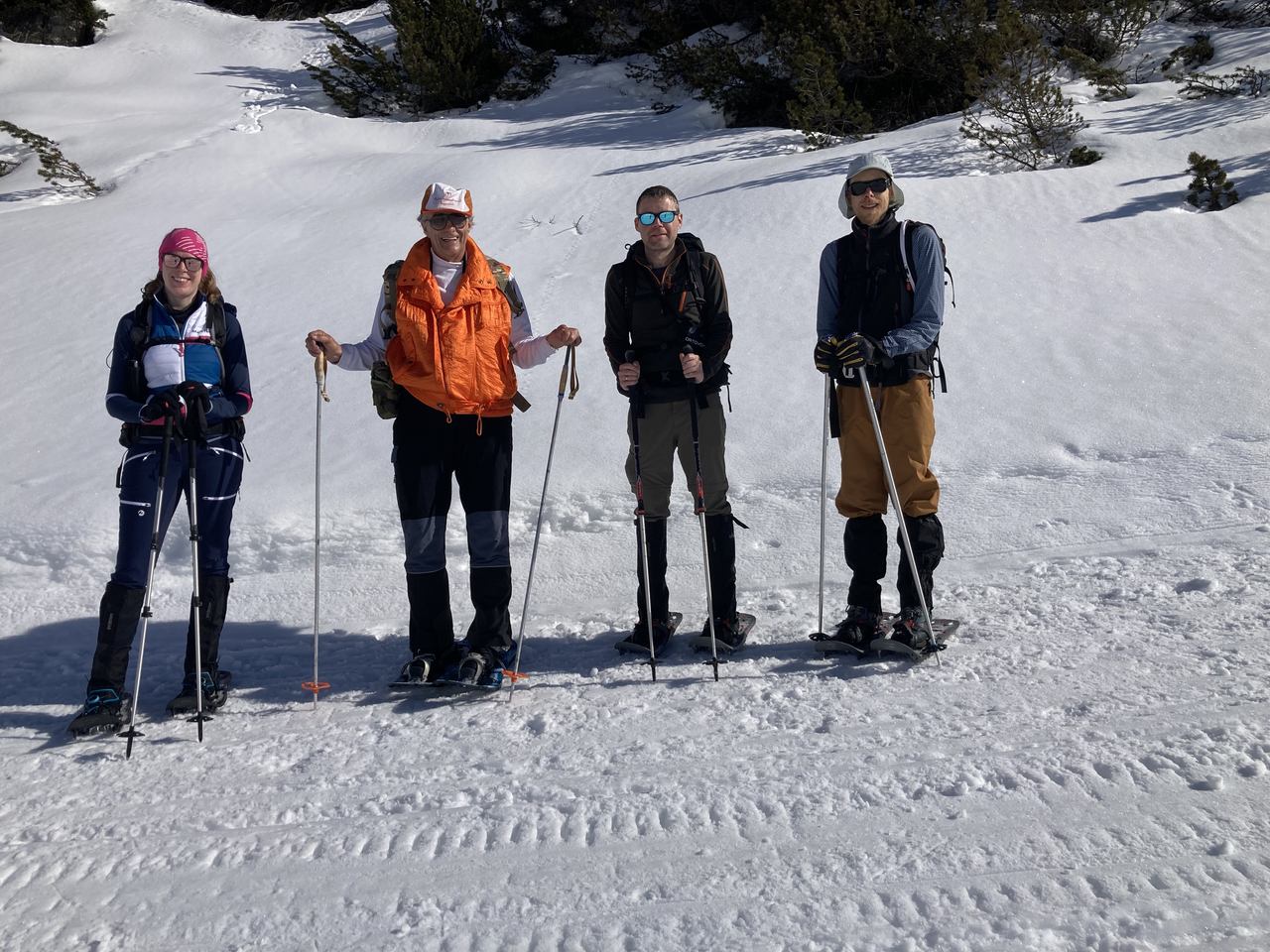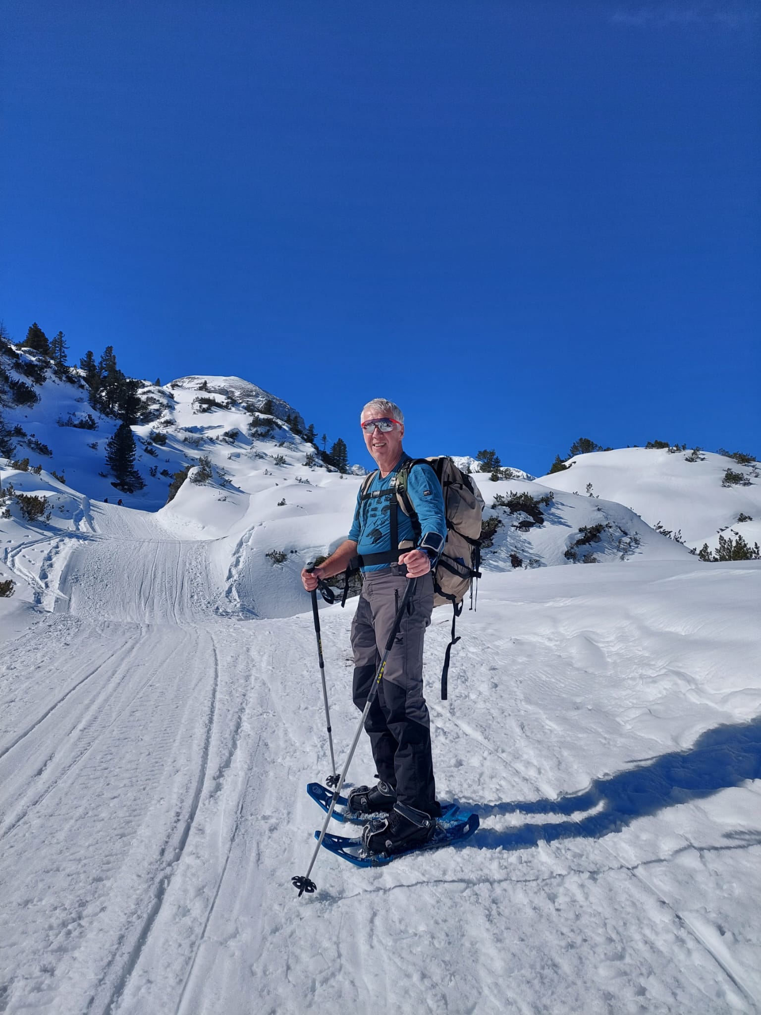 Erst sehr knapp vor Anmeldeschluss haben sich dann doch 4 Interessenten (3 Herren, 1 Dame) für meinen Grundkurs Schneeschuhwandern gefunden, den ich – übrigens erstmalig – in Zusammenarbeit mit dem Hüttenwirt der Gjaidalm letztes Wochenende dort oben veranstaltet habe. Und es war wirklich traumhaft. Herrliches Wetter, frühlingshafte Temperaturen, sehr nette Leute – 2 davon sind extra aus der Gegend von Stuttgart angereist und ausgezeichnete Verpflegung – es hätte nicht schöner sein können.