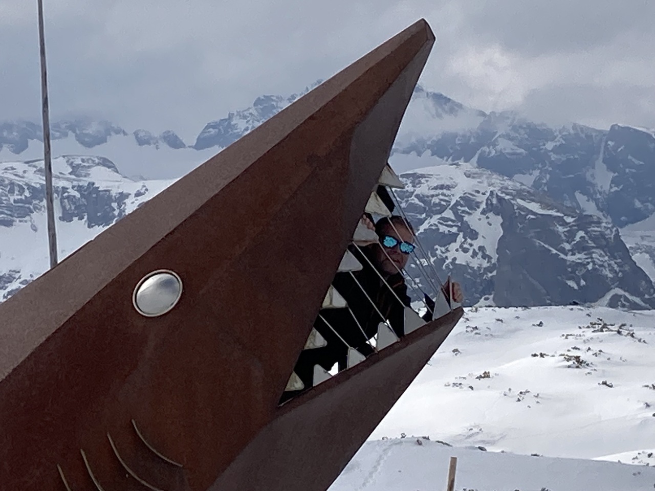 Am Samstag ging es dann zum Wiesberghaus, hin durch die Bärengasse und zurück über den Artillerieweg und am Sonntag dann von der Seilbahnstation Gjaid zum Heilbronner Kreuz und von dort vorbei am Dachsteinhai zur Lodge am Krippenstein. Nach einer stärkenden Suppe ging es dann wieder ins Tal, gerade rechtzeitig bevor die herannahende Kaltfront die Bergstation mit Nebel einhüllte.