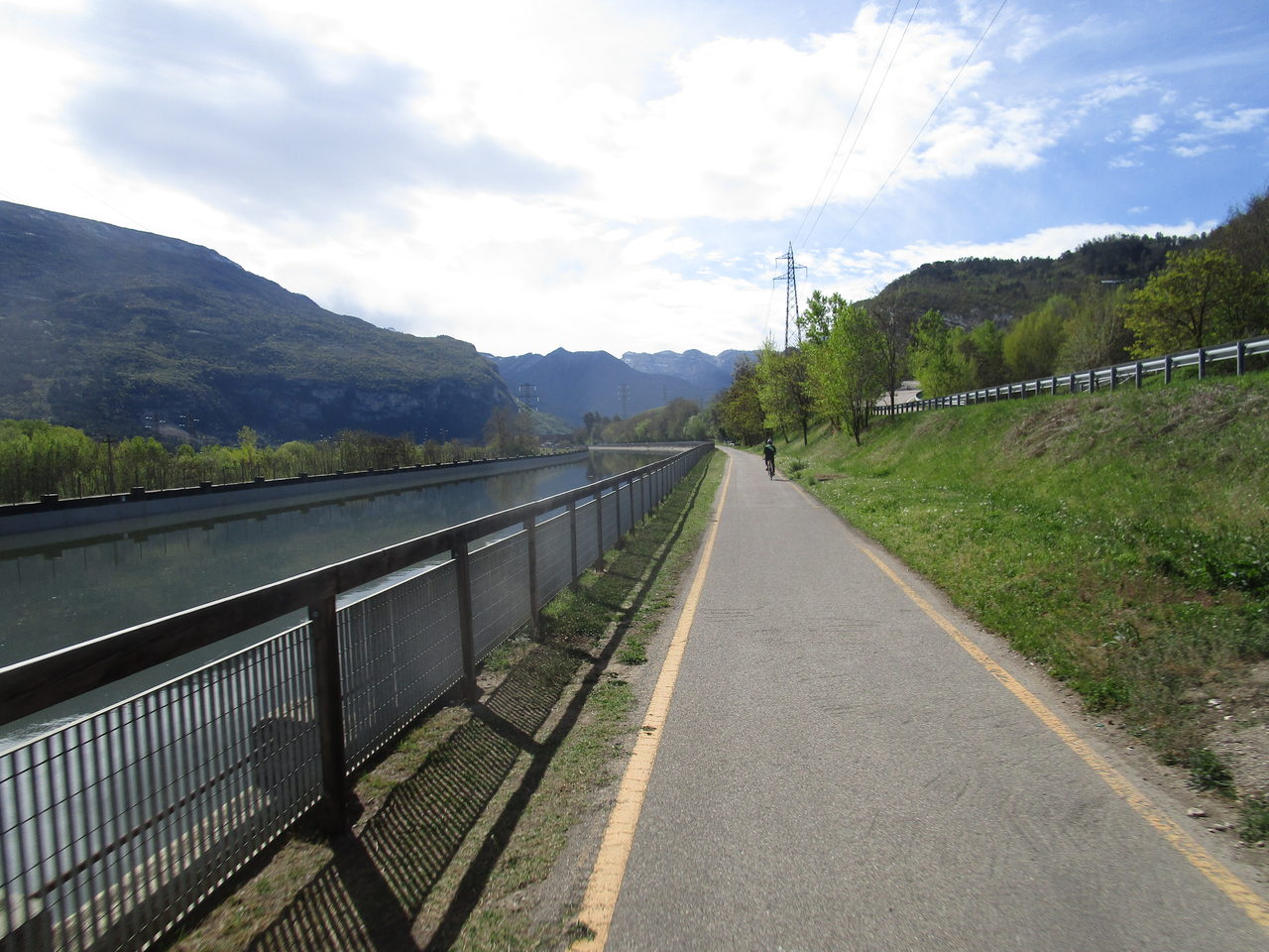 Heute hat mir gleich am Morgen die italienische Bahn einen bösen Streich gespielt, es wurde gestreikt ! Deshalb war es nicht möglich, wie geplant um 11.06 mit der Bahn nach Mori zu fahren und dort um 12:00 Uhr mit der Tour zu starten. Ich musste dann umdisponieren und bin mit dem Rad am Träger die 68 km mit dem Auto nach Mori gefahren, habe dort das Auto abgestellt und bin dann geradelt, zuerst nach Cavaion Veronese und von dort dann zum Hotel in Verona. Wunderschön war es, der Etsch bzw. dem Etschkanal entlang zu fahren, zu beobachten wie der Wein die ersten grünen Triebe zeigt und im Hintergrund der mächtige Monte Baldo mit tiefverschneitem Gipfel herunterschaut. 2 kernige Anstiege, die mit dem e-bike letztendlich harmlos wäre, wenn man sich ausreichen Unterstützung vom Akku holen würde. Von Cavaion noch ein schöner Blick zum südlichen Gardasee und ein Espresso in Bussolengo und kurz vor 16:00 war ich schließlich wieder im Hotel, konnte noch duschen und Kleidung wechseln und dann zum Bahnhof radeln, denn um 17:00 Uhr sollte der Streik laut Ankündigung beendet sein. War er dann auch und so konnte mein Zug um 17:06 fast pünktlich nach Mori starten und ich mit dem Auto wieder zurück zu meinem Fahrrad fahren, das ich beim Bahnhof zwischenzeitig deponiert hatte. So war ich dann schließlich um 19:30 wieder im Hotel und bereit meinen Riesenhunger mit einer phantastischen Pizza Napoli an der Piazza d’Erba zu stillen. Die habe ich mir nach den ganzen Unannehmlichkeiten und den immerhin 80 km auch redlich verdient.