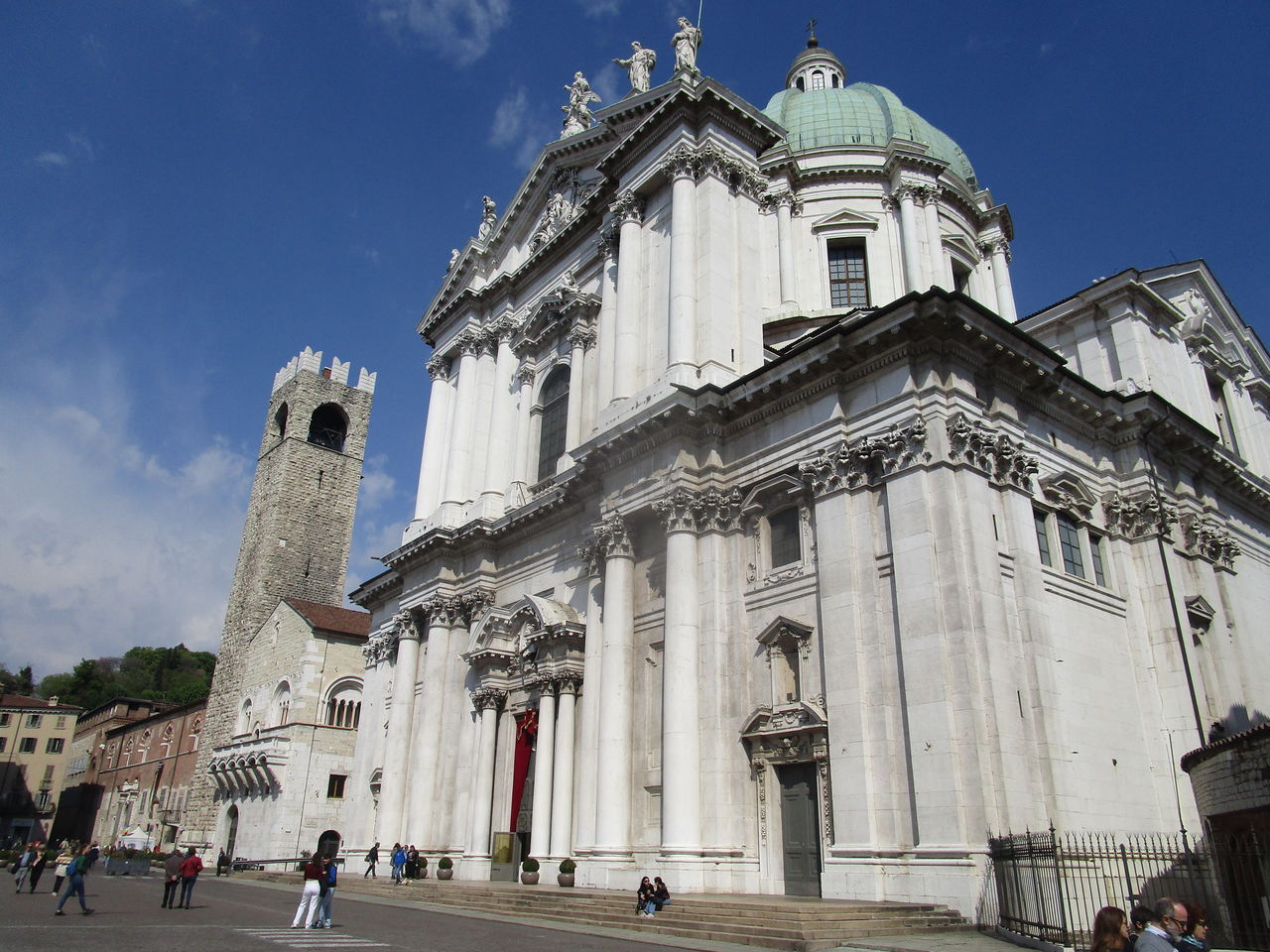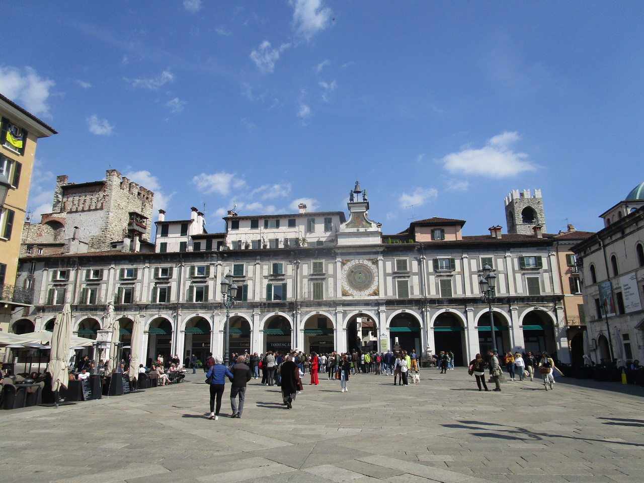 Währen zu Hause in Österreich der viele Regen da und dort schon für Überschwemmungen sorgte, war es am letzten Tag meines Aufenthaltes am Sonntag wieder wunderschön. Am Vormittag war Standortwechsel von Verona nach Iseo (am Lago d’Iseo, dem kleinen Bruder des Gardasees, der ca. 50 km westlich von ihm liegt) angesagt, und als ich kurz vor Mittag dort ankam und die Radtour nach Brescia startete, war es schon so war , dass ich mit kurzer Hose und kurzem Leiberl fahren konnte. Diese Tour war mit ca. 33 km wirklich gemütlich, es ging nur am Anfang etwas bergauf und dann auf schönen Wegen bis an der Ortsrand von Brescia. Toll, wie man dort, in er Stadt in etwa so groß wie Linz, auch an die Radfahrer gedacht hat. Komfortalbe Radstreifen, sehr gute Radbeschilderung führen vom Stadtrand mitten ins Zentrum, wo ich dann an der Piazza Loggia in Ruhe meinen Caffè trinken konnte, bevor es wieder mit dem Zug zurück nach Iseo ging. Ein wunderbares Abendessen im Restaurant des Hotels rundete diese kurze Italienreise perfekt ab und am Montag ging es dann mit dem Auto die knapp 600 km wieder nach Hause. In Innsbruck konnte ich mich bei einer Mittagspause mit meinem alten Studien- und Zimmerkollegen Christian noch für ein nettes Plauscherl treffen und kurz nach 16:00 war ich wieder daheim in der Kälte, wo der Grünberg oben noch schneebedeckt war.