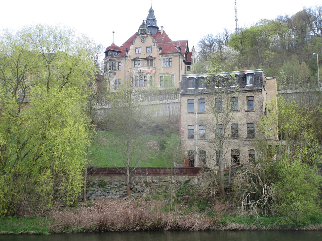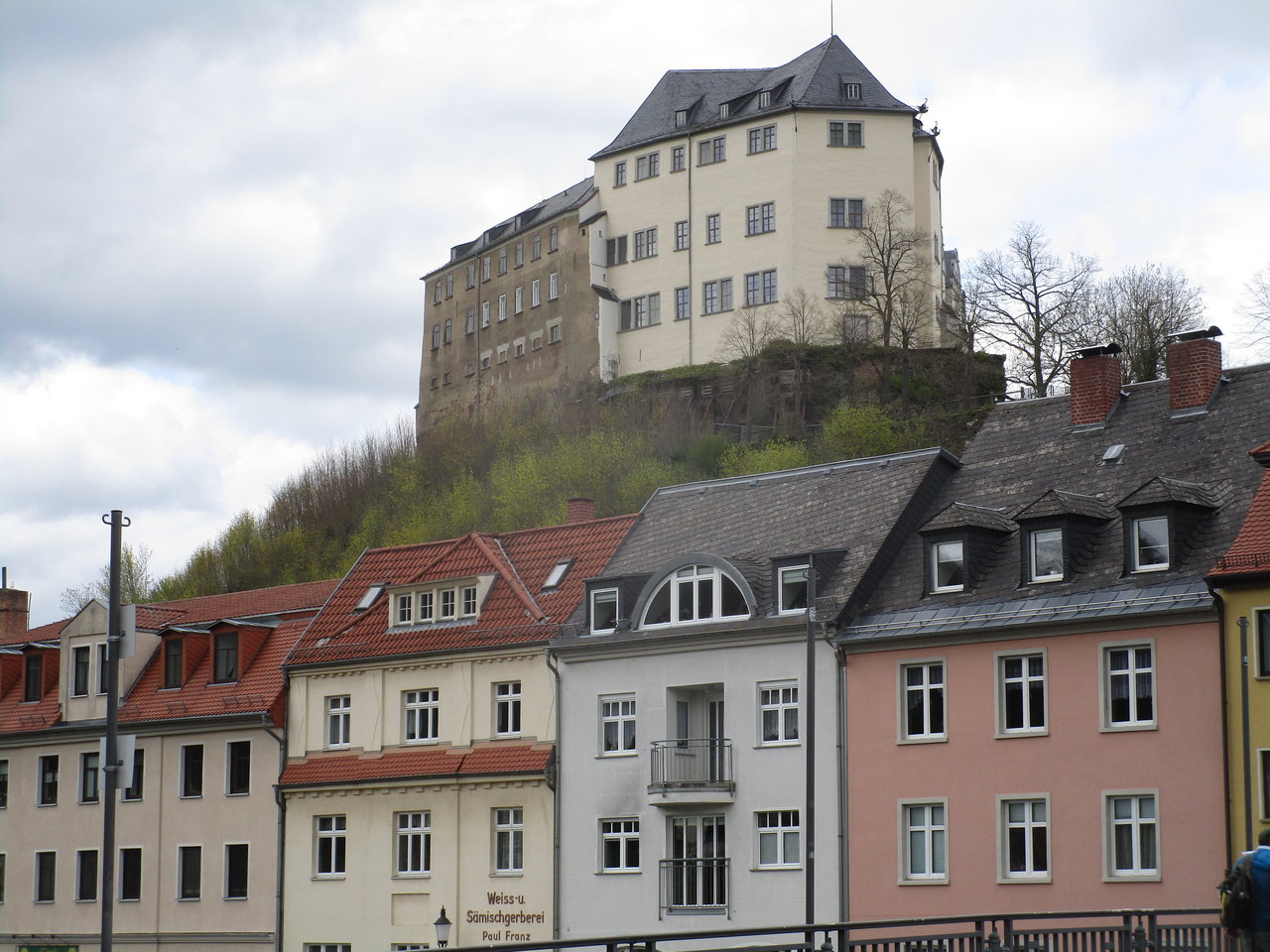 Von dort ging es dann (endlich mal zügig bergab) im Tal der Elster bis nach Greiz, eine schöne Stadt, die schon im Bundesland Thüringen liegt, und dort habe ich mir in der Sonne einen köstlichen Espresso macchiato gegönnt, serviert von einer fröhlichen Italienerin. Dann ging es durch den Werdauer-Greizer Wald wunderschön dahin, bis ich dann langsam wieder in die Zivilisation zurück kehrte und auf normalen Straßen zum Hotel in Neukirchen fahren musste.