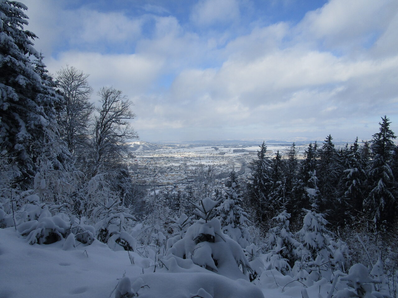 Unglaublich, was es an wunderbaren Pulverschnee bis in die Tallagen geschneit hat. War es gestern mit 2 Stunden Schneeschaufeln noch ein Wintersport der etwas anderen Art (aber auch gesund, wenn man sich nicht zu sehr auspowert), kam heute der Genuss an die Reihe. Was liegt da näher, als wieder mal mit den Schneeschuhen auf den Grünberg raufzustapfen. So gegen 10:30 Uhr war es schon schwer einen Parkplatz beim Engelbauern zu finden, aber der neue P+R-Parkplatz bei der Traunseetramstation Engelhof liegt ja nicht weit weg. Unglaublich was sich dann dort auf der (ehemaligen) Schipiste getan hat. Ein Schitourengeher nach dem anderen, auch einige Schneeschuhwanderer, Kinder mit ihren Bobs und auch welche, die „unten ohne“ die Winterlandschaft erforscht haben. Ich konnte mir mühelos meine eigene Tiefschneespur suchen, ist zwar etwas anstrengender als in der bereits ausgetretenen Spur zu gehen, aber dafür ein ganz besonderes Wintererlebnis. Und da alles praktisch vor der Haustüre.
