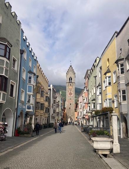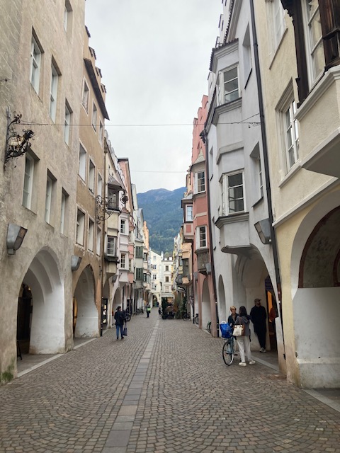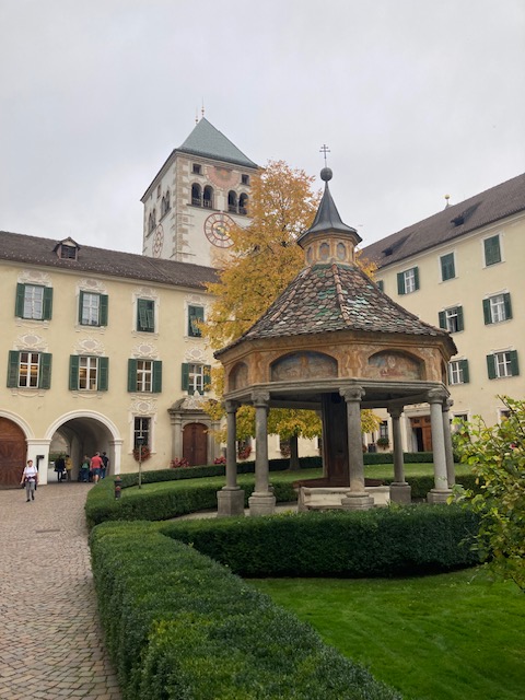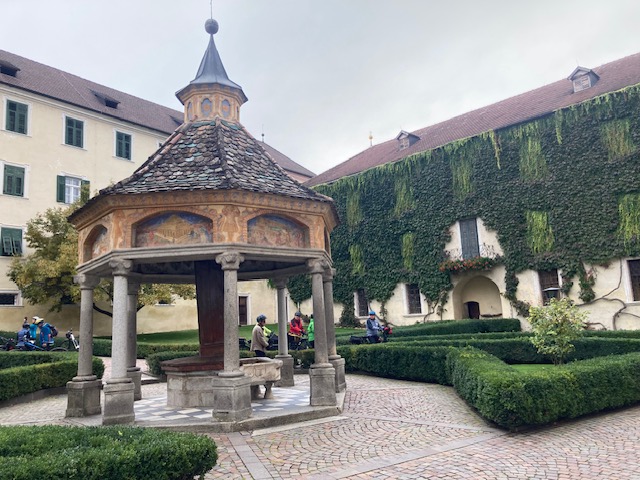 Heute, am 3. Tag ging es mit dem Bus nach Innichen, nördlich der Sextener Dolomiten, und dann das Pustertal nach Westen, zuerst Toblach, mit dem imposanten Grand Hotel, dann zum Mittagessen auf eine sehr feine Pizza im Rienzbräu in Bruneck und dann über das Kloster Neustift mit seinem Weltwunderbrunnen nach Brixen, wo wir schon kurz nach 16:00 Uhr eintrafen und noch durch die wunderschöne Altstadt bummeln konnten, bevor es wieder zurück zum Hotel ging. Immerhin 78 km waren es dann auch wieder.