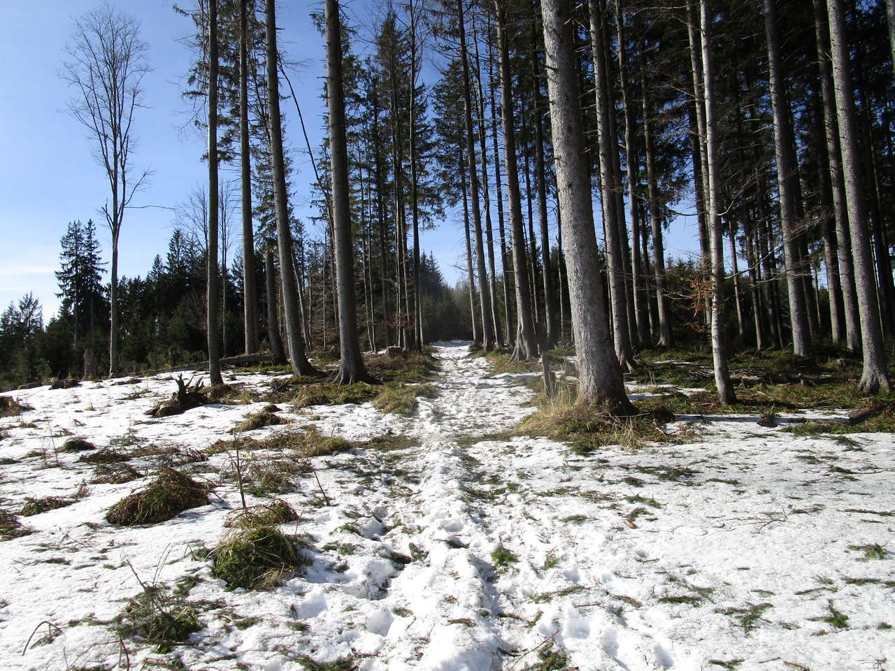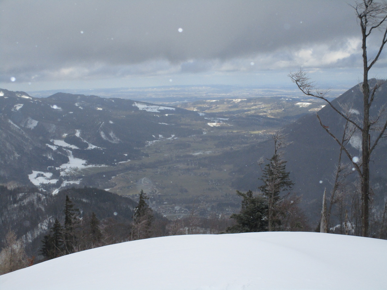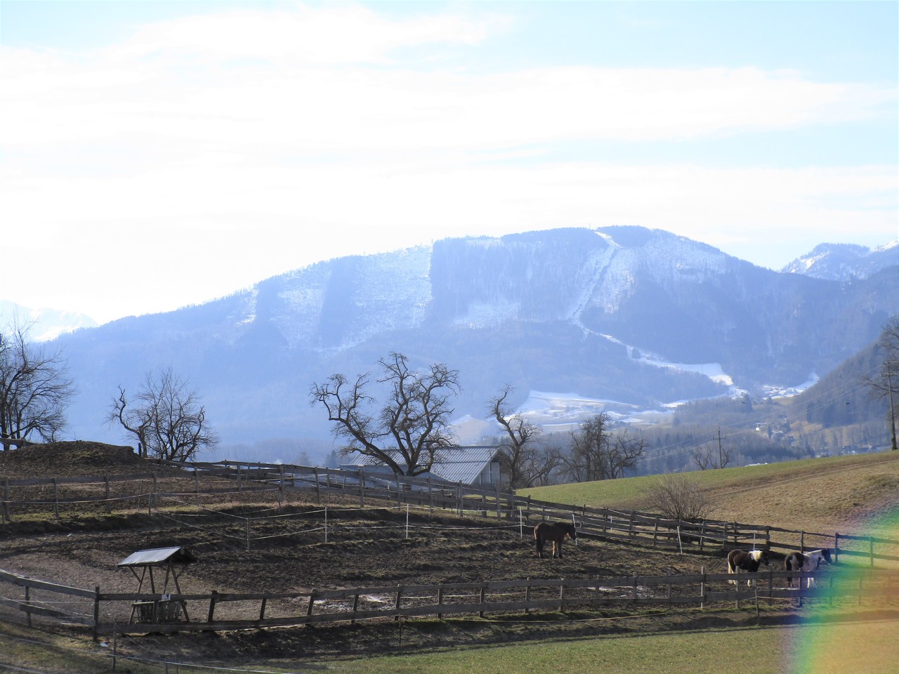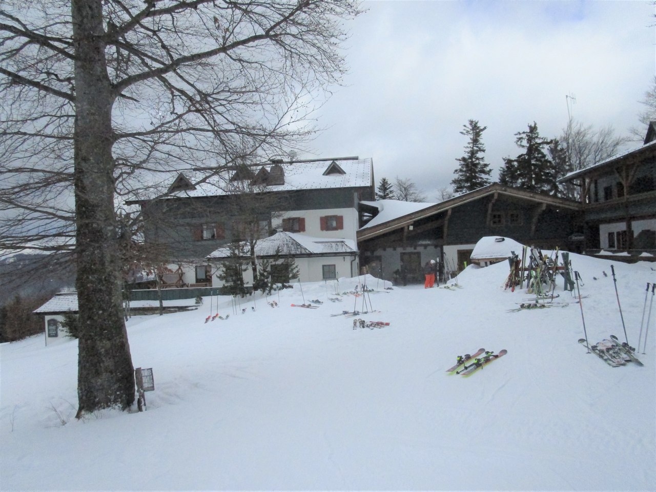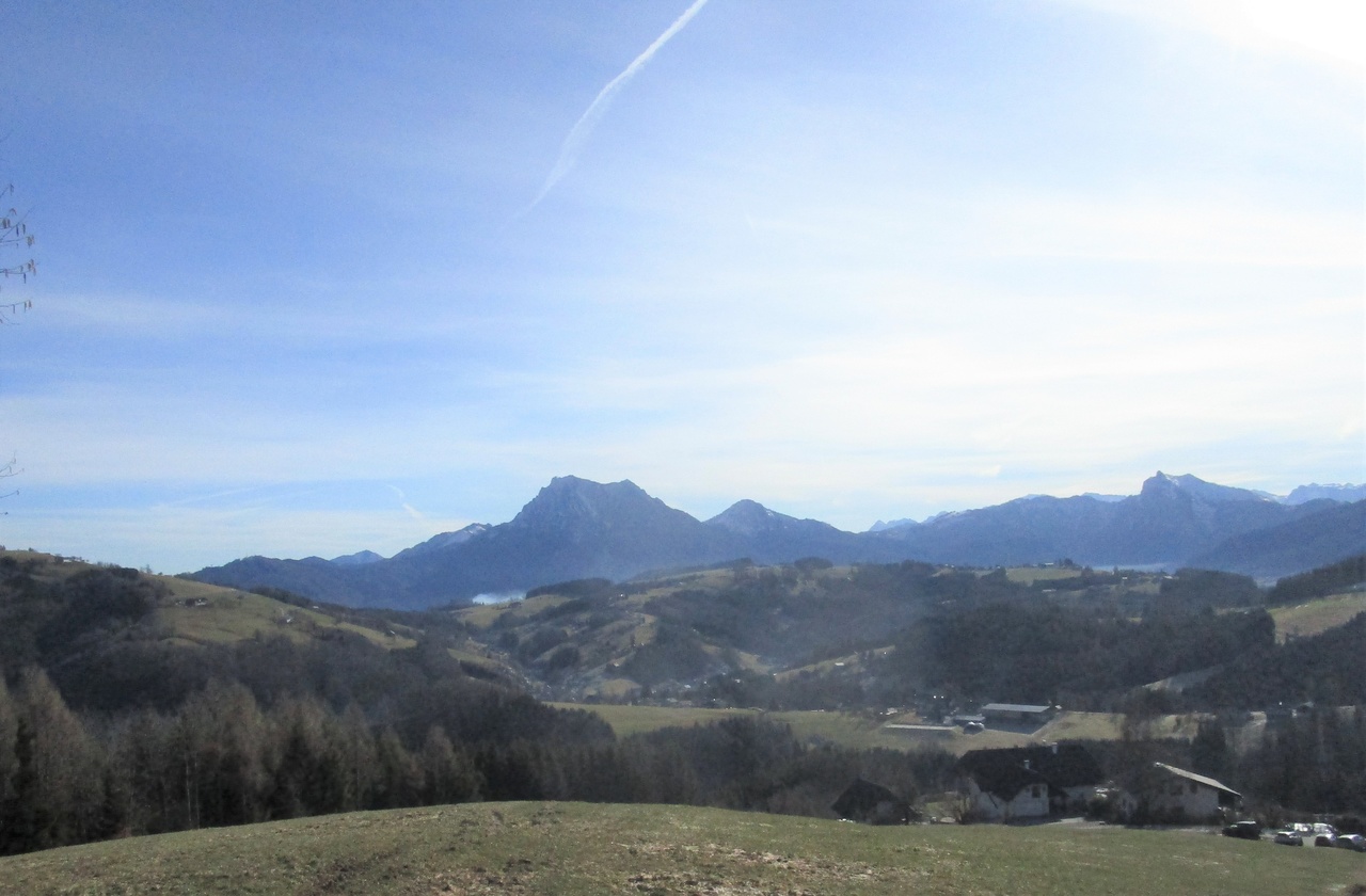 Angereist mit dem Öffi bis Gosau Wirtsstrasse war ich schon überrascht, wie viel Schnee dort auf gut 700 m liegt, es waren bestimmt noch gut 60 cm, die da noch auf den Hausdächern lagen. Und ab der Kalvarienbergkapelle ging dann der sogenannte „Herrenweg“ los Richtung Süden. Anfangs etwas steiler, aber bald ging es gemächlich weiter nach oben, vorbei an der Mittelstation des Hornspitzliftes, wo noch die Schifahrer vorbeizischten, dann Falmbergalm und unterhalb der Ötscheralm bis zum Schlepplift #9 Heute bin ich nicht bis ganz hinauf zur Bergstation der Panorama-Jet-Gondelbahn, sondern über die Piste hinab zur Talstation, um den geplanten Bus rechtzeitig zu erwischen, aber eigentlich schade – lohnender wäre gewesen noch die ca. 250 Höhenmeter weiter bis zur Sonnenalm hinaufzusteigen und mit der Gondelbahn hinunter zu fahren, denn der Abstieg am Rand der Piste ist dann doch nicht so ein tolles Erlebnis. Hier noch ein paar Eindrücke: