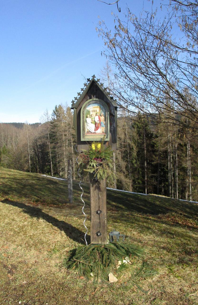 Es ist ja schon mehr als ein Jahr her, dass ich mit meinem Freund Willi die 11. Etappe des Salzkammergut BergeSeenTrails gegangen bin und damals war Sommer. Nach dem Abstieg von der Goiserer Hütte nach Gosau führte uns ein wunderschöner Wanderweg von der Gosauer Kalvarienbergkapelle zuerst zur Mittelstation des Hornspitzliftes und dann weiter hinauf bis zur Zwieselalm. Schon damals dachte ich mir, dass das auch ein sehr schöner Winterwanderweg mit den Schneeschuhen sein könnte und das wollte ich mir heute bestätigen.